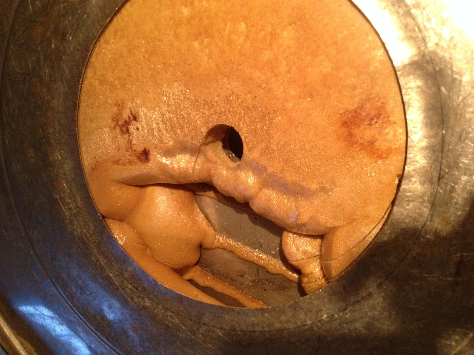 Aber grade nach dem Kochen habe ich immer einen angetrockneten Rand von Schaum. Da muss man doch schruppen.? Und wie kriegst du den Treber raus?