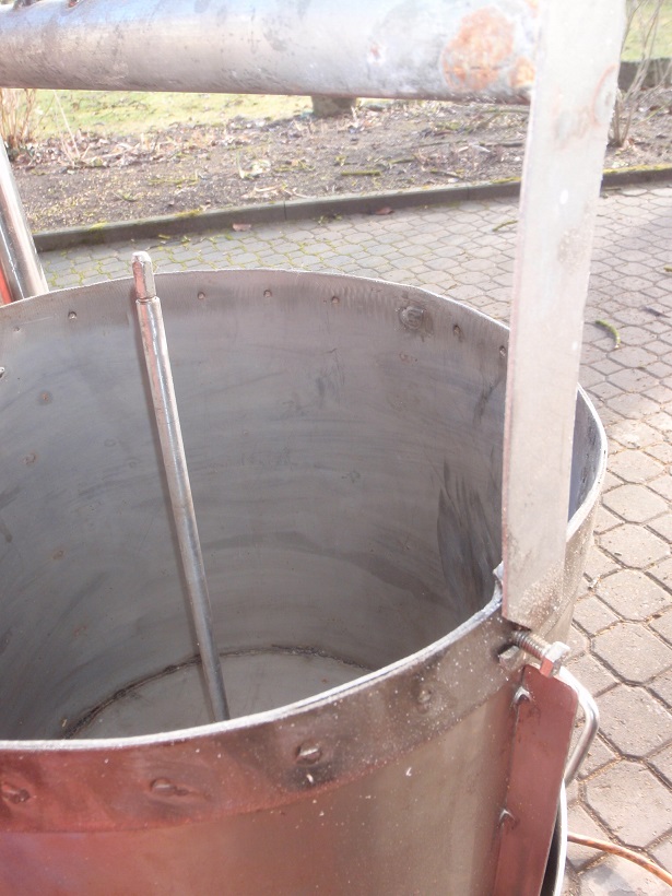 Den Innentopf und die Anordnung, wie sie ist, braucht man zum Läutern beim Nachguss.Wasser läuft zwischen Innentopf und Malzrohr durch Maische und dann nach unten durch die Löcher im Innentopf.