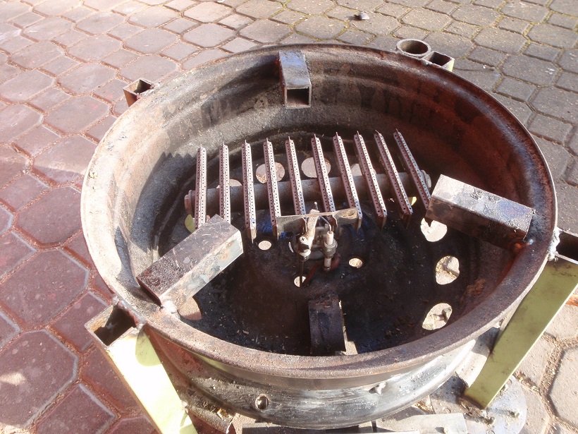 Frank bemerkte das er wieder mal zu dickes Material genommen hat.Ich habe deshalb und weil ich es halt so bekam ein 06 Blech für den Topf genommen. Leider habe ich damit keine vernünftige Rundung hinbekommen. Als Lösung habe ich dann einen 2 cm breiten Ring aus stärkerem Material gebogen und diesen als Abschluß oben angeschweißt. So gings.