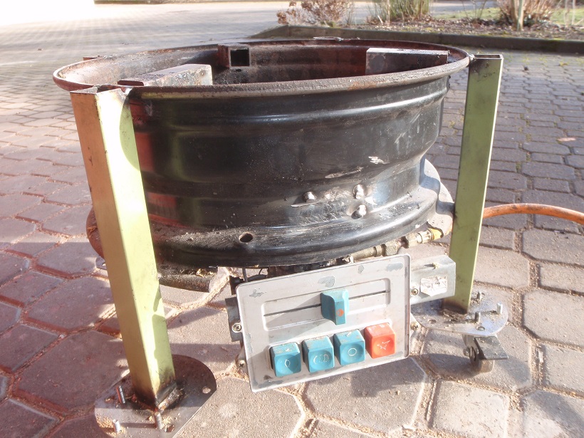 Frank bemerkte das er wieder mal zu dickes Material genommen hat.Ich habe deshalb und weil ich es halt so bekam ein 06 Blech für den Topf genommen. Leider habe ich damit keine vernünftige Rundung hinbekommen. Als Lösung habe ich dann einen 2 cm breiten Ring aus stärkerem Material gebogen und diesen als Abschluß oben angeschweißt. So gings.