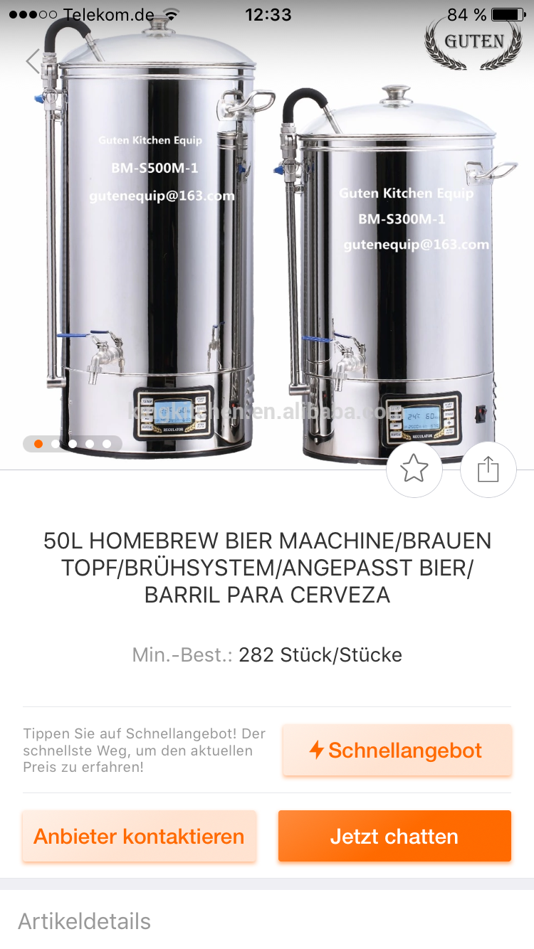 Das hat aber auch seinen Vorteil, denn so kann man öfters verschiedene Biersorten brauen und muss nicht auf lange Zeit das Gleiche trinken.Heiko76 hat geschrieben: Mit dem Einkocher hatte ich 22l. und mit dem Mundschenk jetzt 29l. ! PRIMA![]()