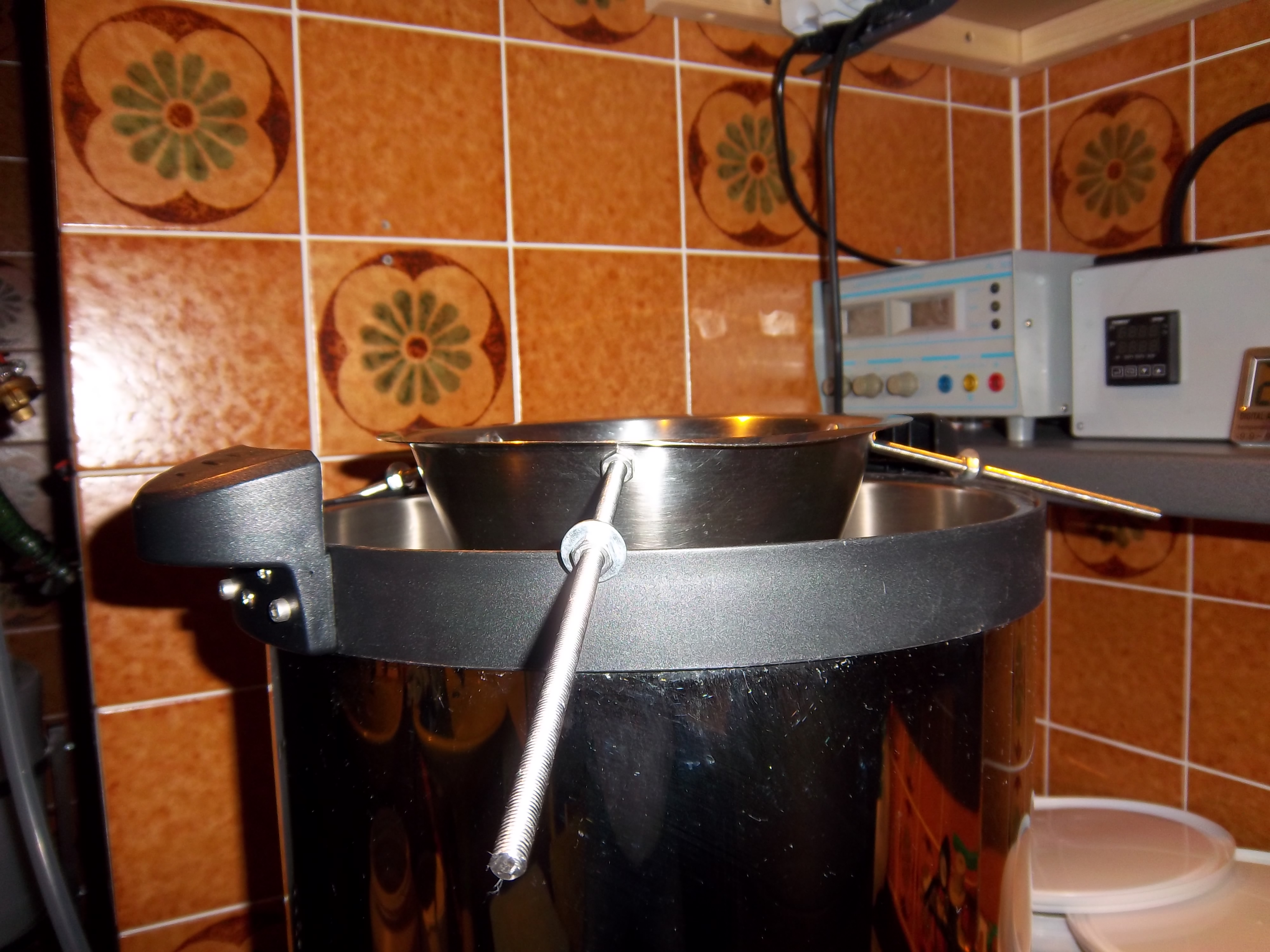 Einfach und simpel, passt auf jeden Topf. Eine Salatschüssel, ein paar Löcher, ein paar Gewindestangen und Muttern fertig. Natürlich alles Edelstahl.