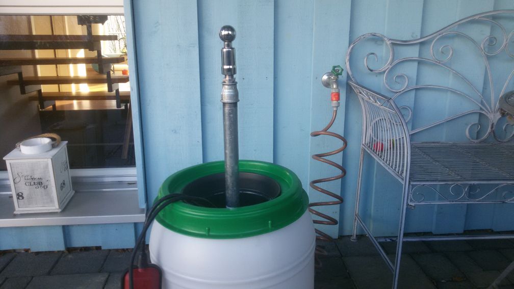 Motiviert durch diesen Thread und die vielen guten Ideen darin habe ich ebenfalls eine einfache Fass-Waschanlage gebaut: