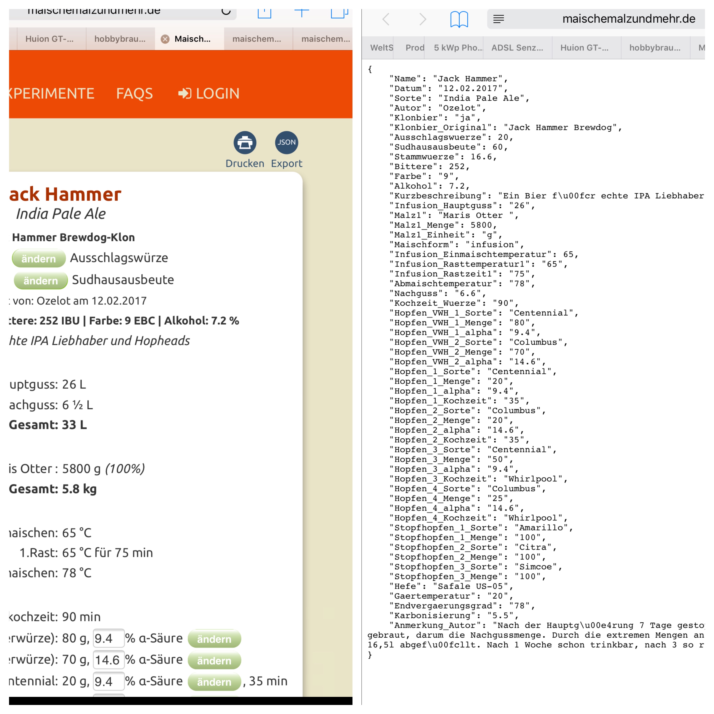 Danke für deine tolle Arbeit, ich braue mit V2.1 schon lange sehr erfolgreich. Könntest du in V3.0 den JSON- Export von MaischeMalzUndMehr implementieren? (Siehe Beispiel unten) Somit wäre ein Rezept Import von MMUM möglich. Wie seht ihr das?