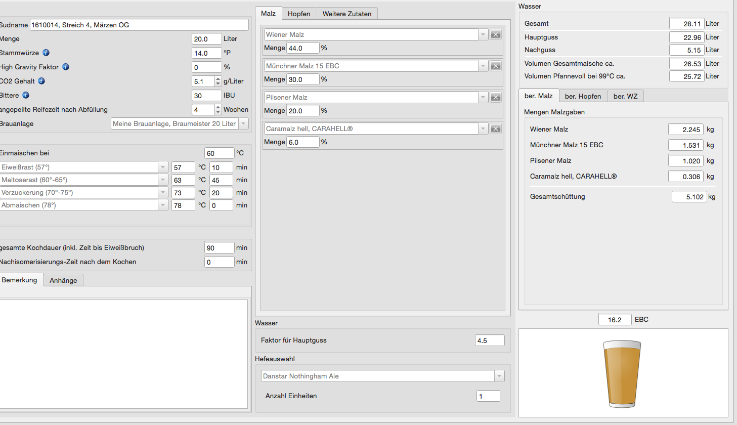 Ergebnis war 20,5 L, Stammwürze 14,25 %mas.