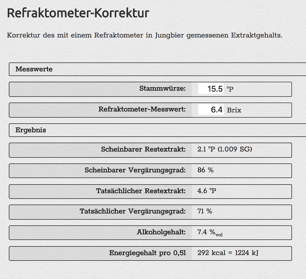 [Ironie on] MMuM ist auch super für die Profis unter den Refraktometer-Nutzern. Die können sich dann jeweils die Berechnung rauspicken, die gerade am besten zu ihrer Erwartung passt. Gerne auch den Mittelwert der beiden Formeln. [Ironie off]