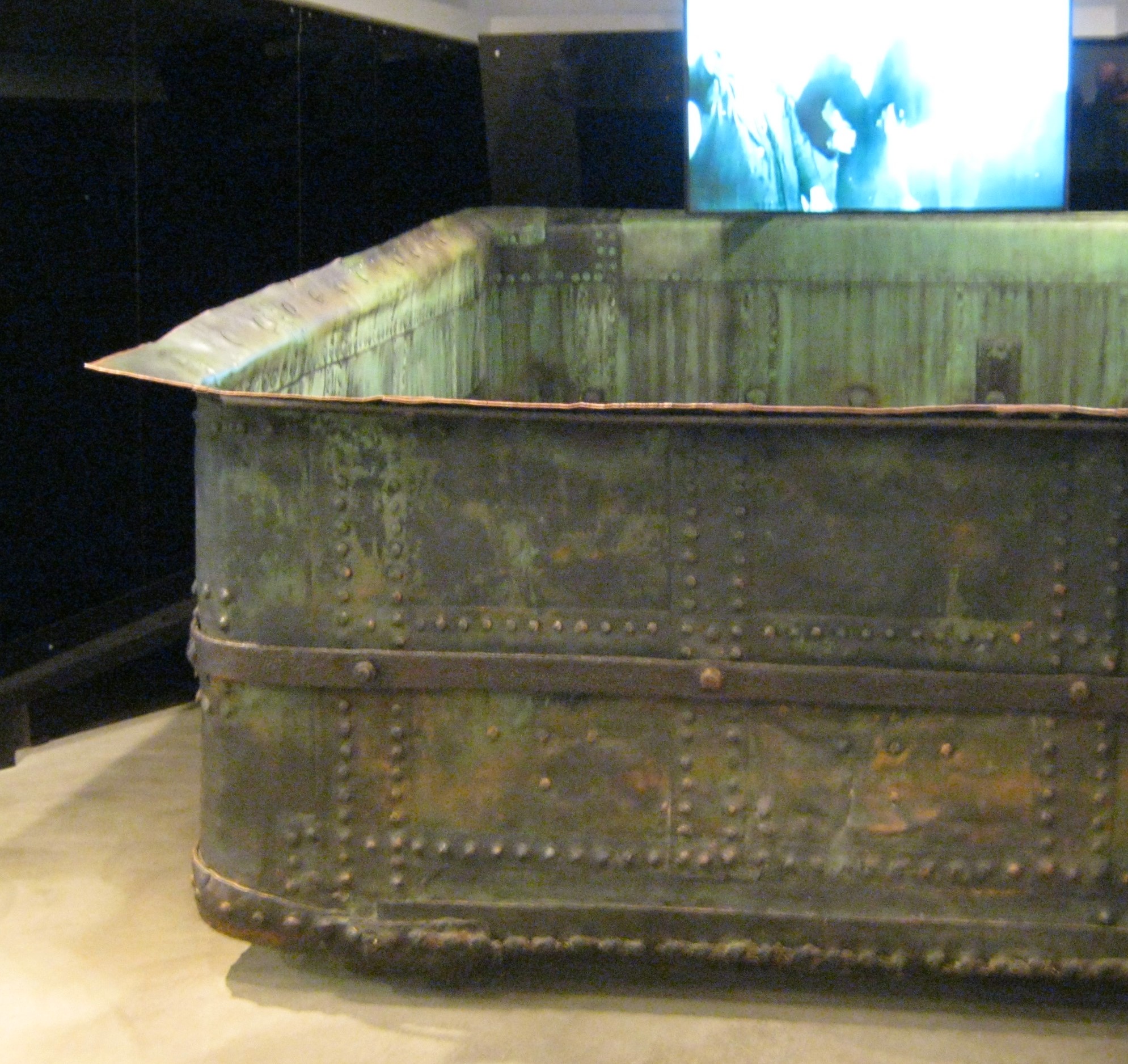 Die "Pfanne" in der das erste Pilsener gebraut wurde. Das war noch kein Hightech. So weit weg sind wir da, mal abgesehen von der Kapazität, mit unseren Anlagen nicht. Pils ist aber trotzdem nicht trüb. Begeisterung der "Leute" hin oder her, wenn man das nicht klar hinbekommt ist das auch kein Pils. Trübung war einer der Gründe warum die "Leute" in Pilsen 1838 ausgeflippt sind und vor dem Rathaus 36 Fässer obergäriges Bier vernichtet haben.