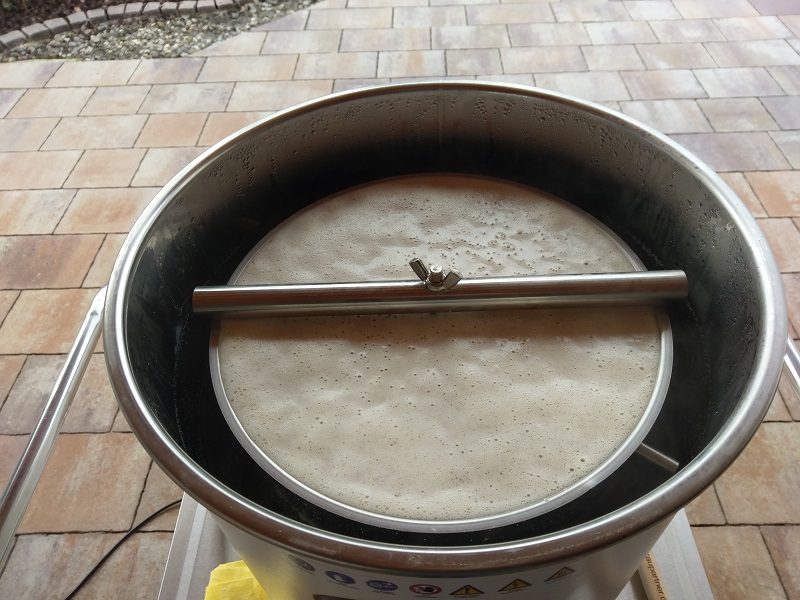 Damit konnte ich am Ende nochmal ca. 5-6l entnehmen, die noch immer 12°P hatten.