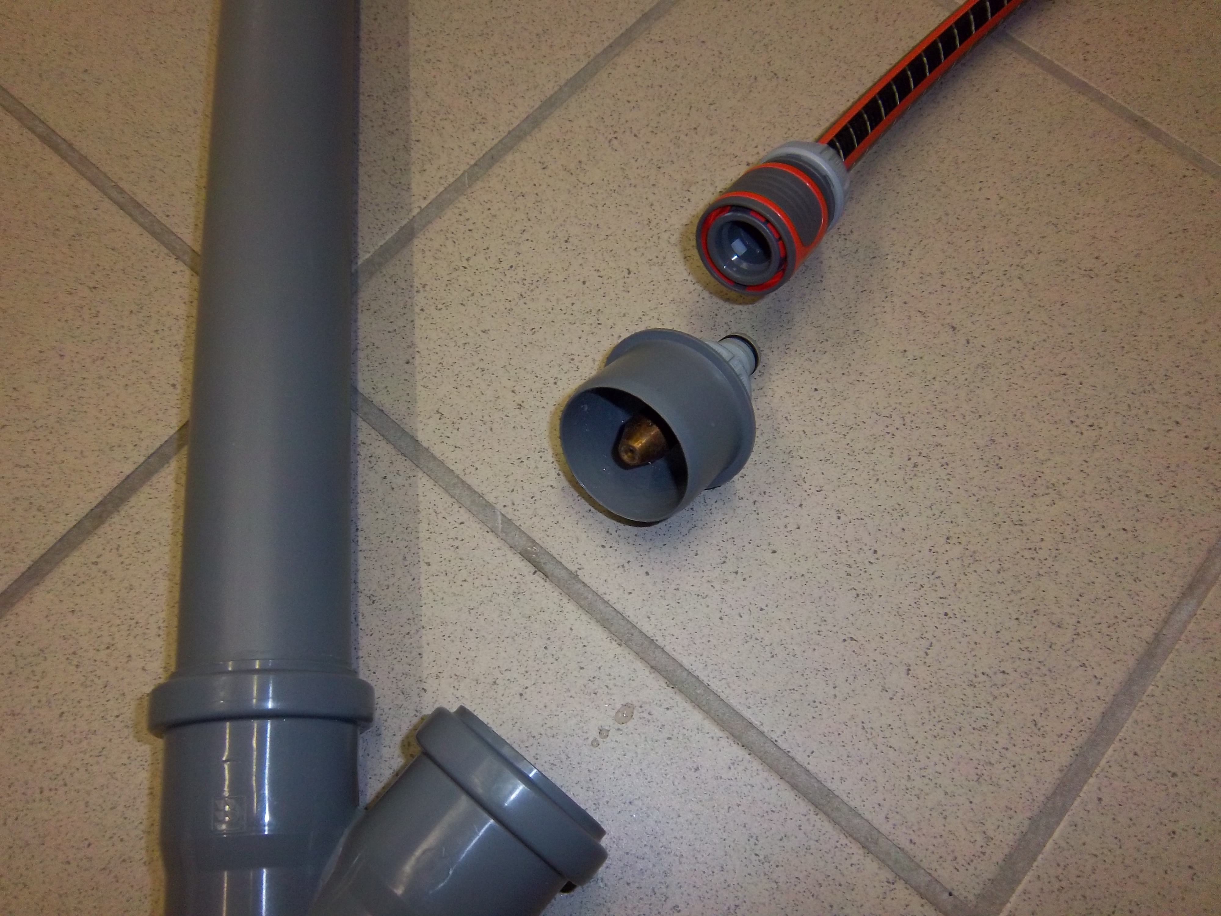 Das untere Ende des Dampfkondensators habe ich jetzt mit einer HT-50 Schlauchanschlusskappe (nach der 2. Verjüngung abgeschnitten) versehen.