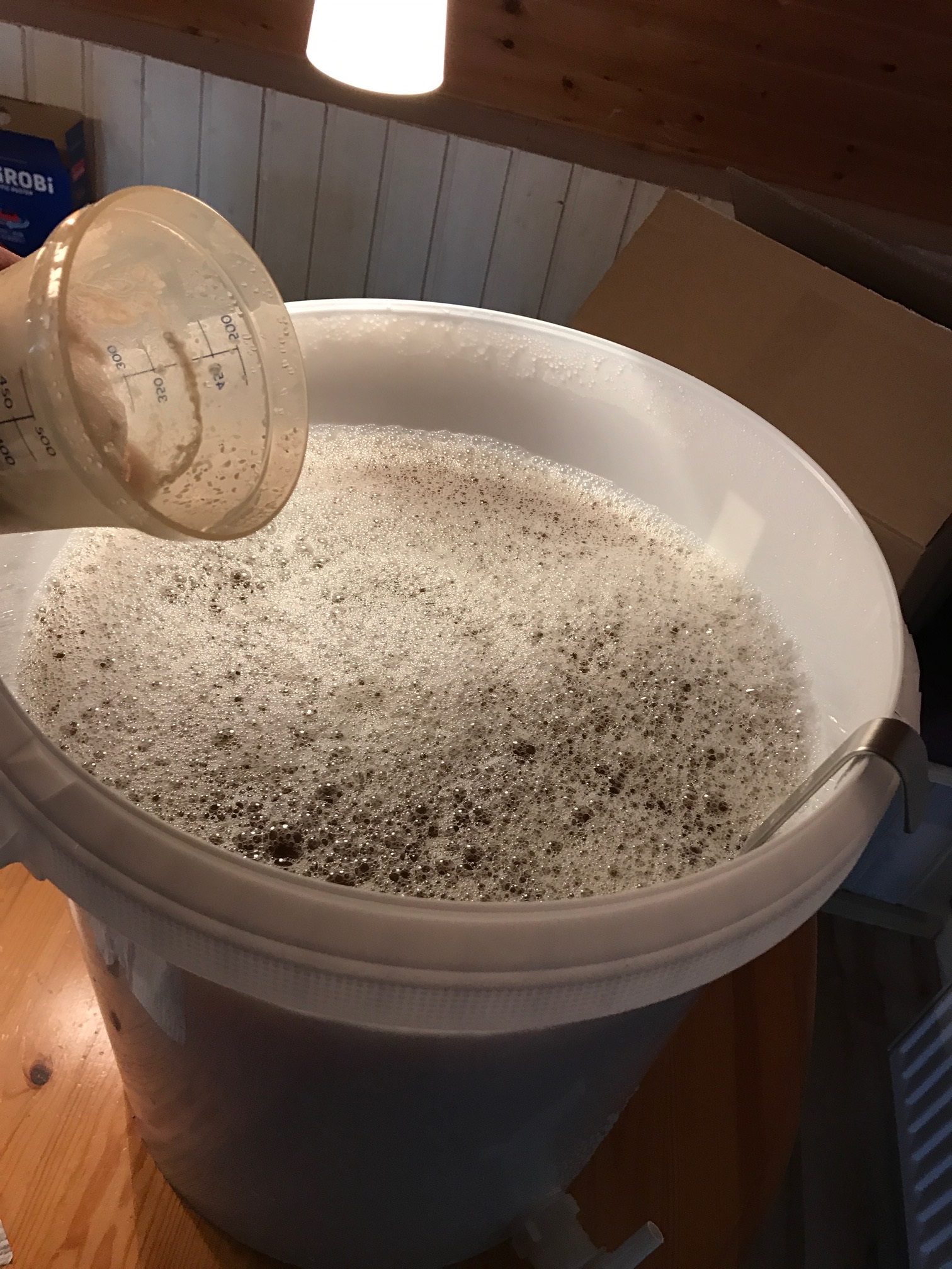 32. Würze belüften und Rehydrierte Hefe hinzugeben