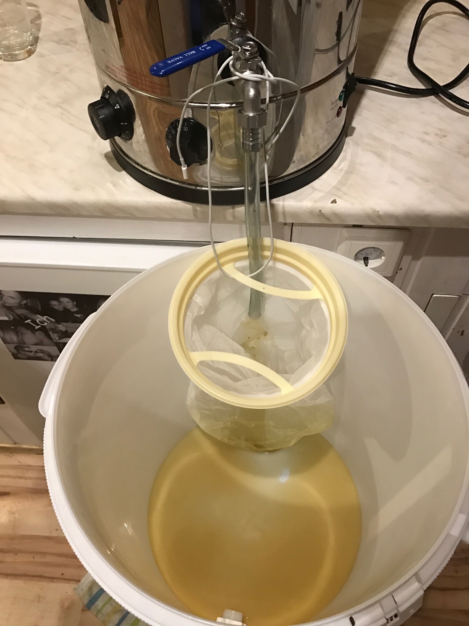20. Leider habe ich hier erst ein Foto gemacht als ich schon gemessen haben wo der Nachguss durchläuft. Nach dem Läutern waren es 16°P