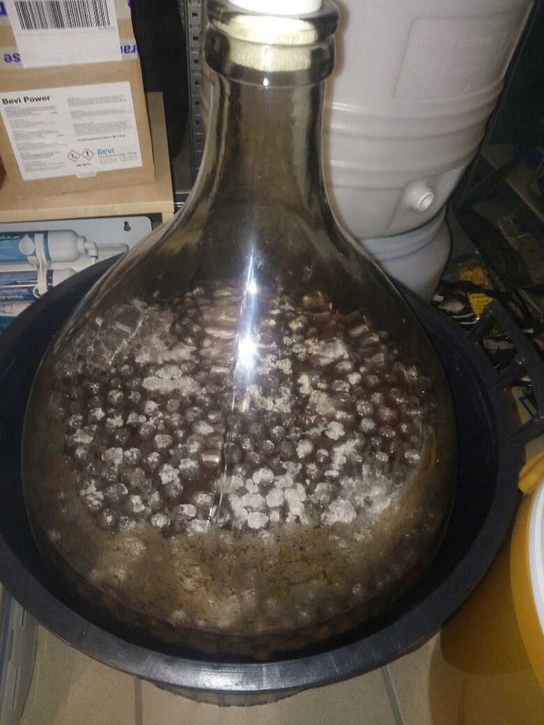 Gärbehälter aus Glas und nicht aus Kunststoff um Acteobacter nicht zuviel Sauerstoff zu geben.