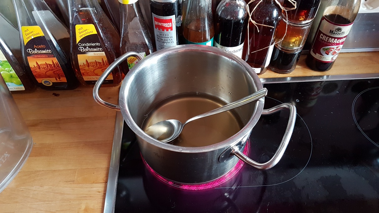 Zwei Wochen später war die Gärung dann endlich durch. Also Zuckerlösung für Karbonisierung vorbereitet: