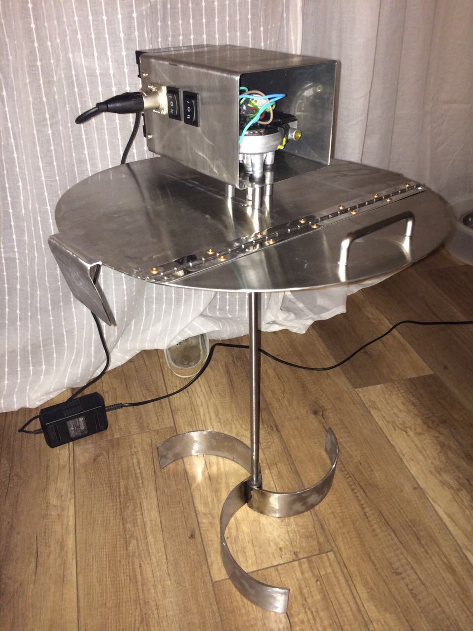 Meine Idee wäre beim original Posinelli die kleinen Rührblätter abzuflexen und etwas Besseres anzuschweissen. Der Rührwerksmotor und die Wellenbefestigung sind beim original 1A und mit der Umdrehung von ca. 60 U/min müsste es ja auch gut passen.