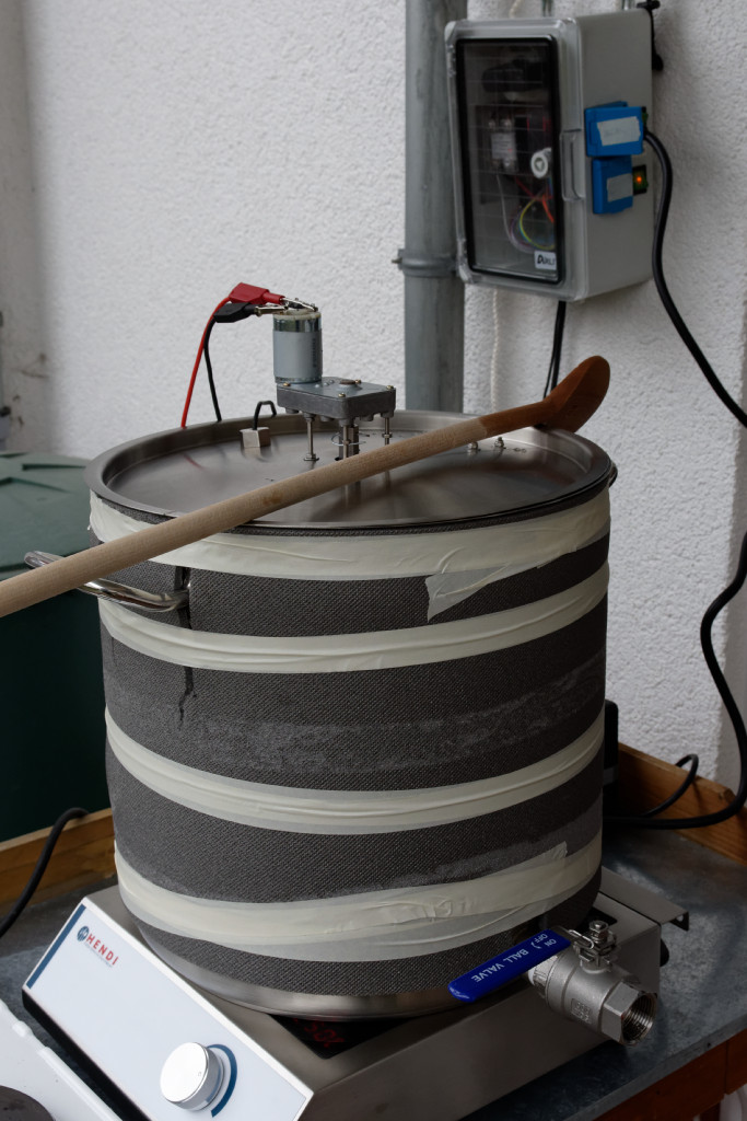 Bisher habe ich mit dem Emaille-Einkocher der Schwiegermama gebraut, jetzt endlich, komplett in Edelstahl.