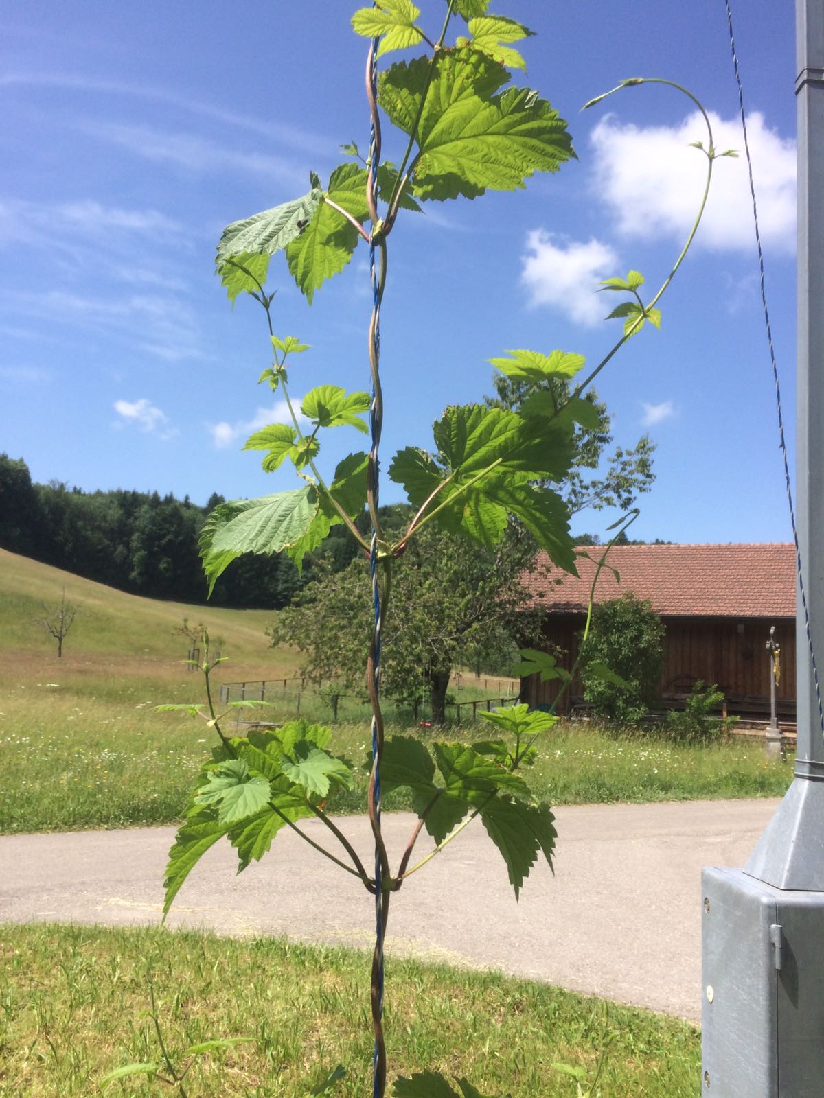 Hopfen ist ein Starkzehrer, der viel Dünger braucht. Deshalb hat dieses Unkraut auch üblicherweise Nitratwerte jenseits von Gut und Böse. Ist halt ein Auwaldgewächs und fühlt sich in nährstoffreichen Schwemmschlamm sehr wohl. Kupferspritzungen (Bordeaux-Mischung) wirken gegen Krankheiten und unter Umständen auch aufs Aroma, weil es die Bildung flüchtiger Thiole fördert. Überhaupt müsst ihr aufpassen, dass Schädlinge, Krankheiten oder Sturm und Hagel euch nicht die gesamte Ernte vernichten. Im Frühjahr müsst ihr den Hopfen per Hand um die Drähte leiten.