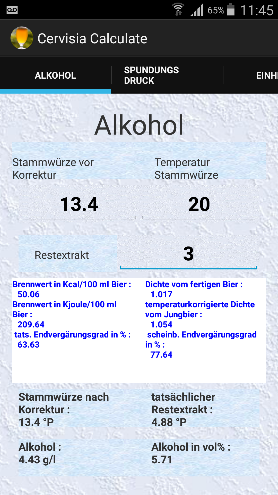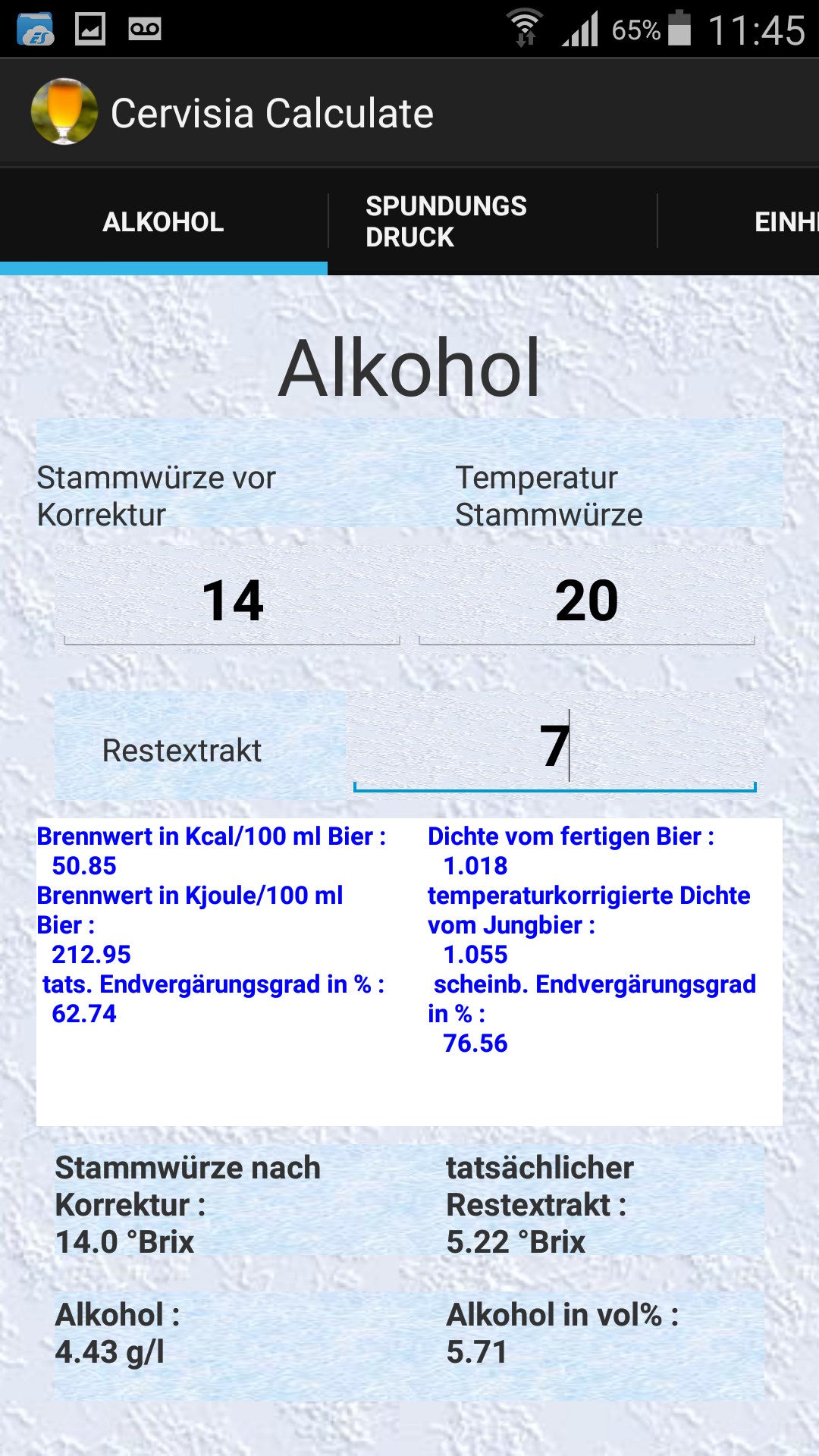 Re: Android Berechnungsmodul Cervisia Calculate