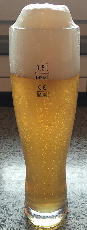 So sah es gestern eingeschenkt aus einer frisch abgefüllten Flasche aus: Das Bier schmeckt wie es aussieht, ist frei von Jungbierattitüden, in der Trübung genau richtig, ist bombig im Schaum und auf den Punkt karbonisiert.