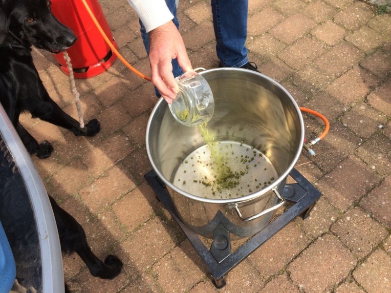 Was mir gerade nur aufgefallen ist, pass bitte auf deinen Hund auf mit dem Hopfen. Der sieht ganz gespannt darauf, Hopfen ist für Hunde aber echt gefährlich.