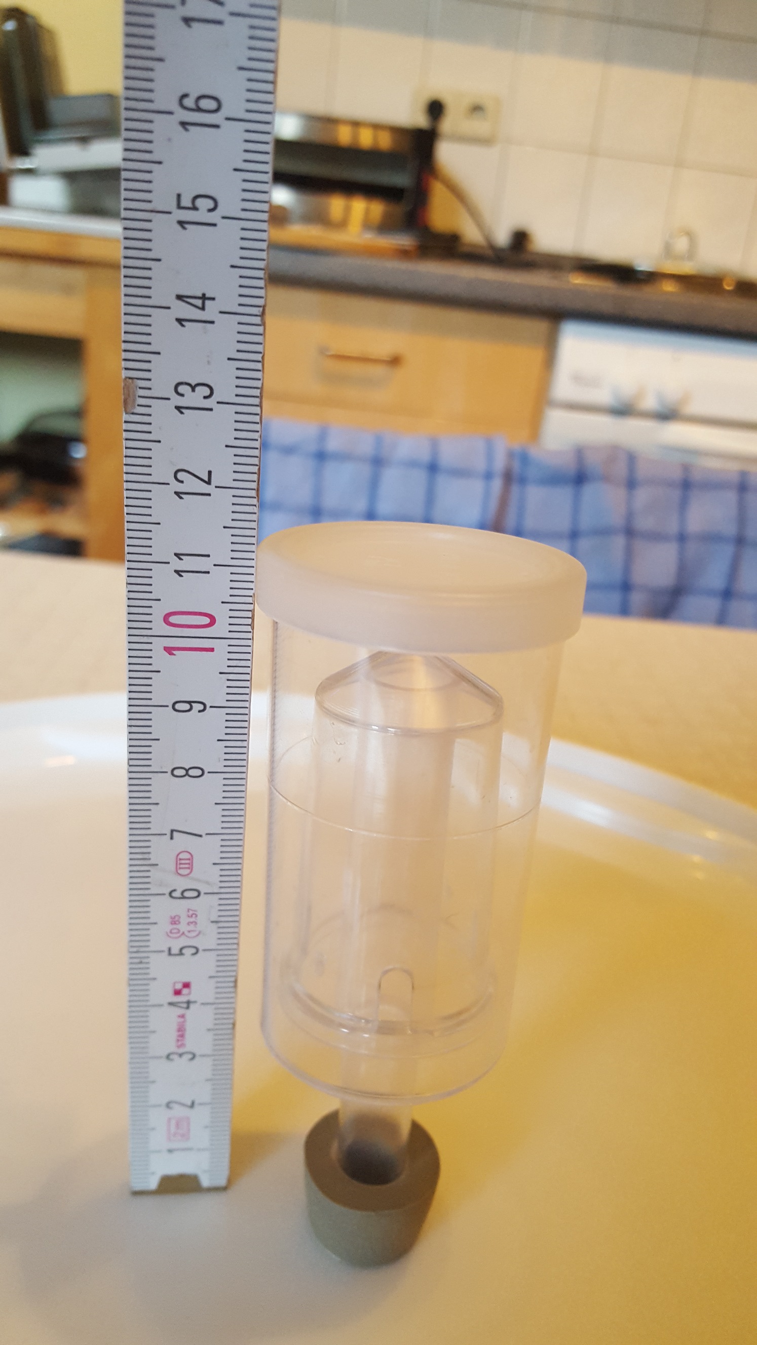 Ansonsten kannst du natürlich auch einen Schlauch ansetzen, und den in einem wassgefüllten Marmeladenglas enden lassen. Geht auch, blubbert schön, und falls die Hefe rauskletter ist das Problem durch ein entsprechend grosses Marmeladenglas einfach zu lösen :)