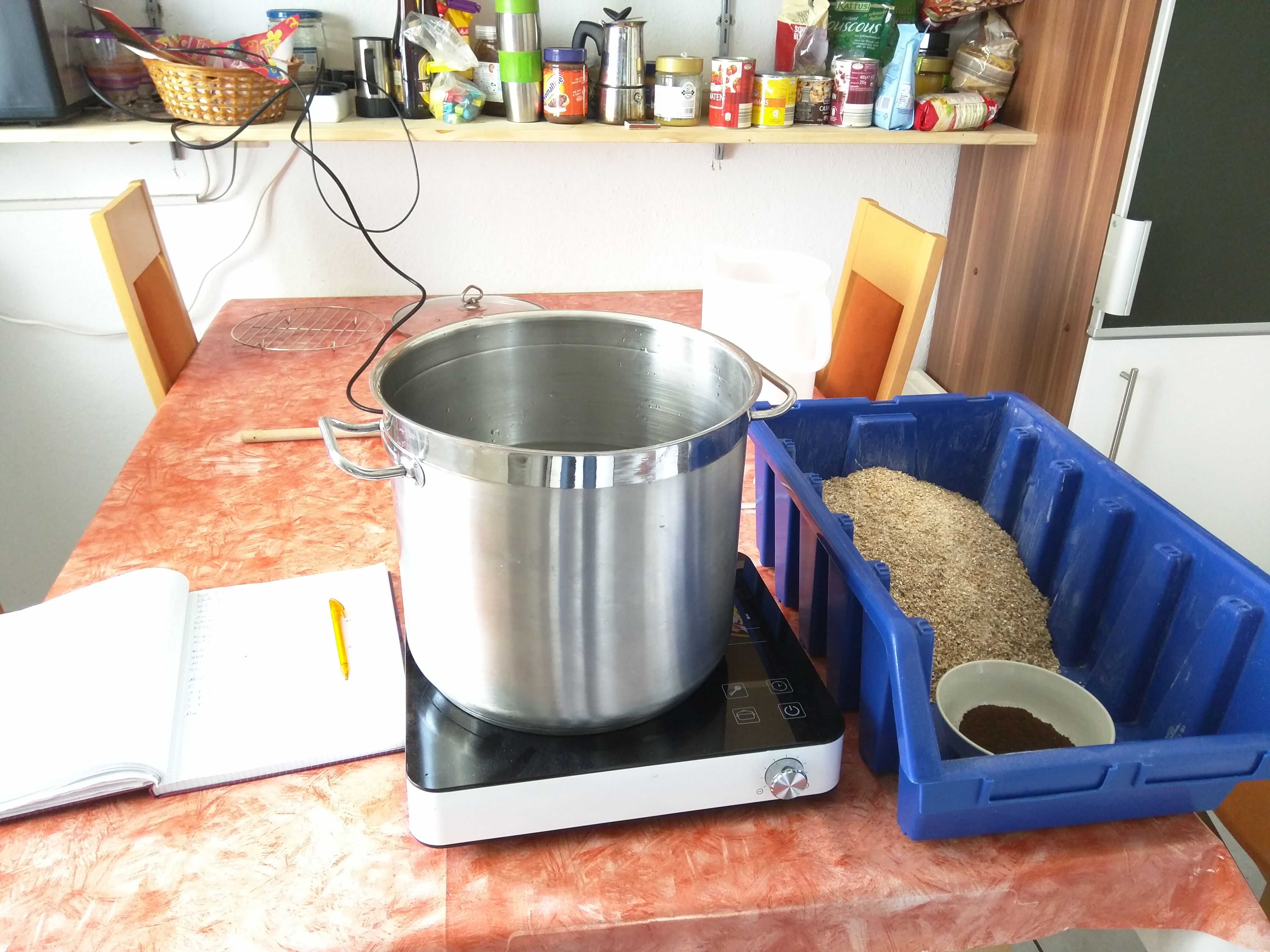Wie schön, der Topf ist randvoll und die Würze hat 11.2 Brix, genau wie gwünscht