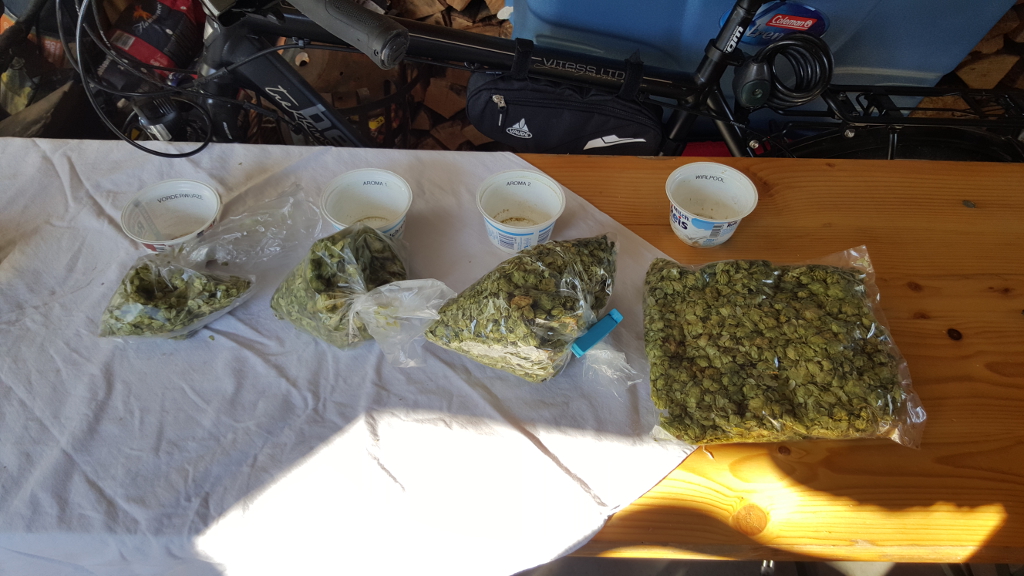 Der erste Teil der Dolden für die Vorderwürzehopfung. Was für ein schöner sonniger Tag!