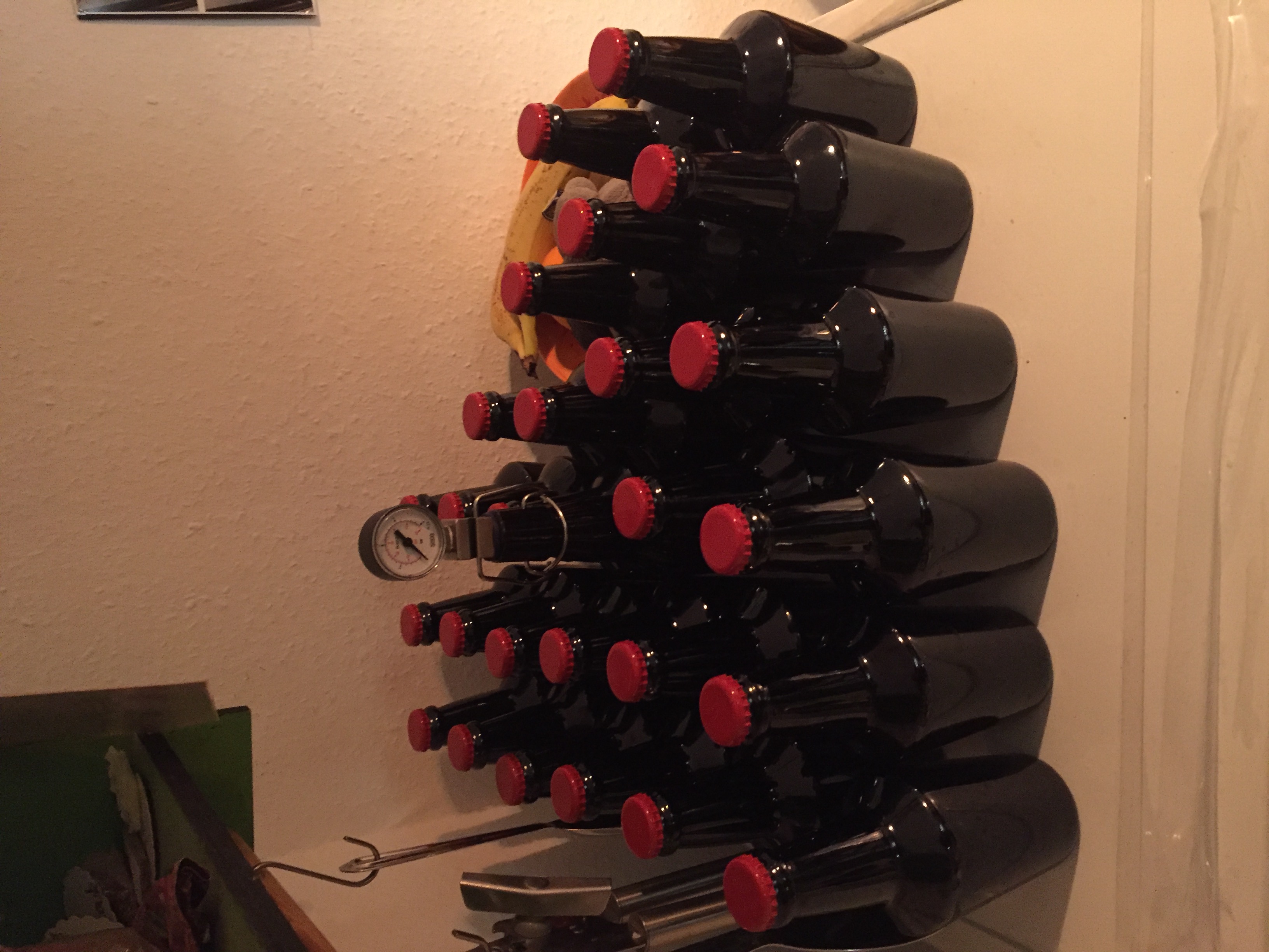So fertig umgefüllt gings dann an die Kühlung in den ehemaligen Schuhschrank .... jetzt Bierbrau-Utensielen-Kammer u. Gärraum .... ich liebe meine Frau