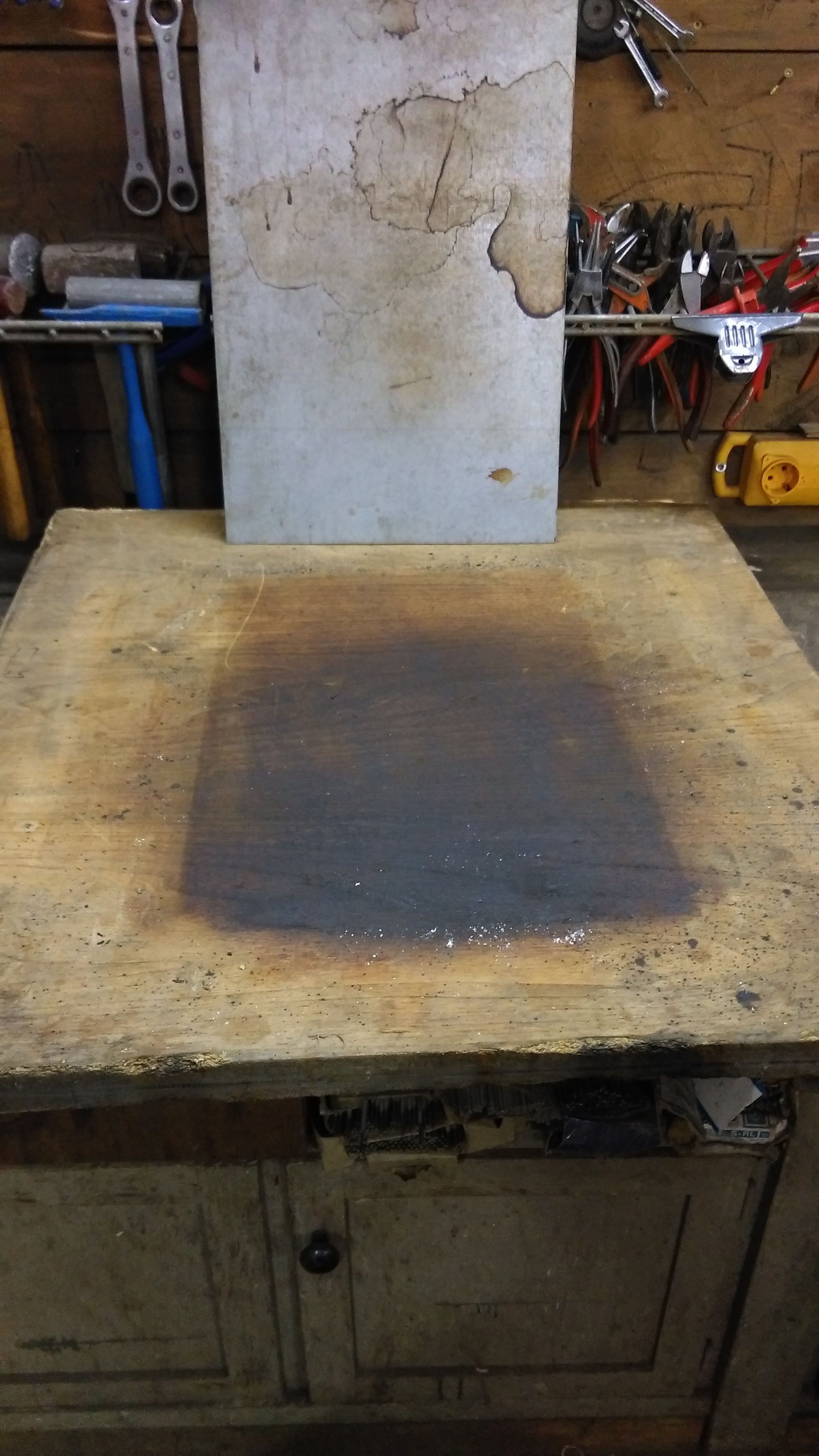 ich habe meine 15kw Brenner auf 4mm Alu Riffelblech stehen, die Riffel nach untern. Funktioniert super, die Tischoberfläche (Siebdruchplatte) sieht aus wie neu.