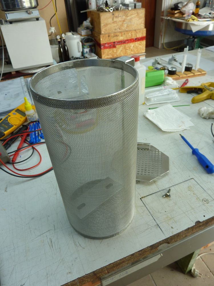 Wie es funktioniert wird sich zeigen aber das Volumen des bekannten Hopfenfilters ist ganz schön und Edelstahlbeschwerungsgewichte kann ich bei Bedarf mehrere hineinlegen.