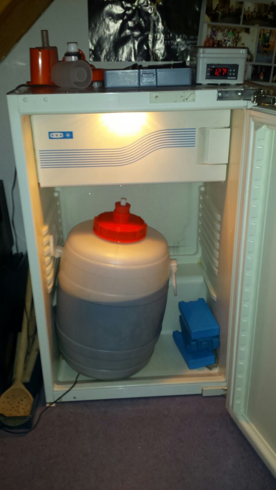 Das Gärfass kam dann in den mit einem Inkbird gesteuerten Kühlschrank, zuerst bei 9°, dann langsam auf 12°ansteigend, nach bereits 12 Stunden kam die Notti sichtbar an. Jetzt heißt es warten, sobald es an die Flaschenabfüllung geht, melde ich mich hier wieder