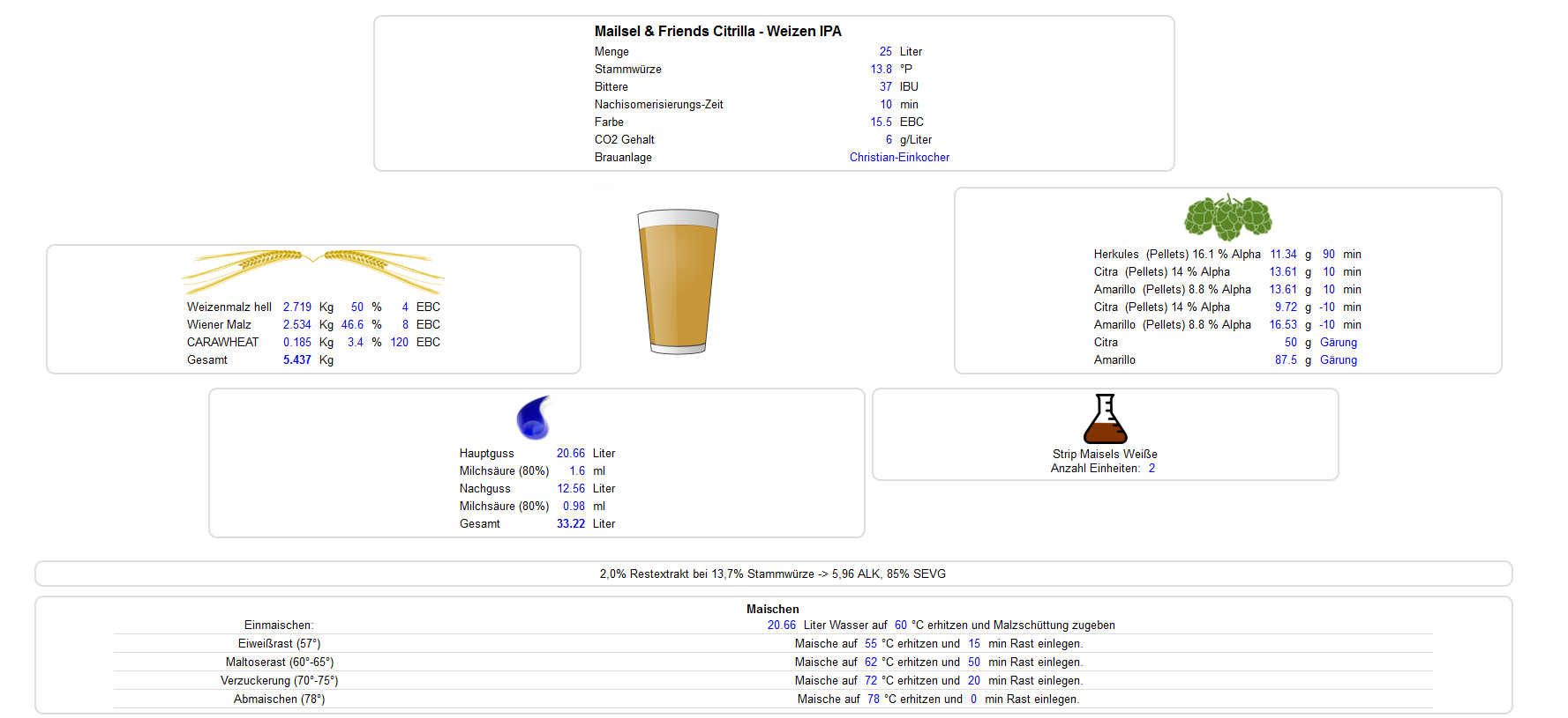 gestern haben wir uns mal daran versucht ein Maisels & Friends Citrilla Clone Bier zu erstellen. Weil meine Anlage dafür etwas zu groß ist, haben wir die Ausrüstung der Einkocherklasse von meinem Kumpels benutzt.