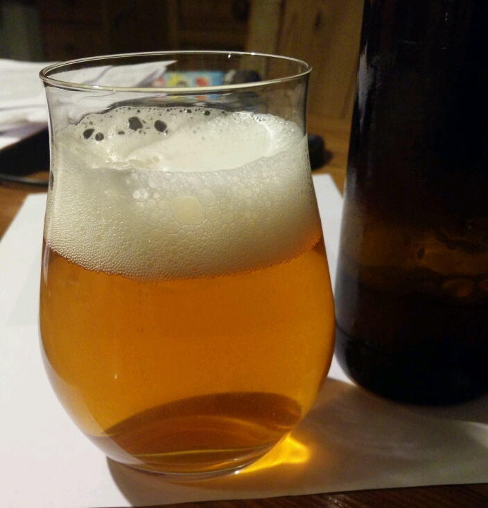 Das Bier reift eigentlich in einem NC-Keg, dies ist ein Schluck aus einer der 7 Flaschen in die der Überschuss zur Nachgärung abgefüllt wurde.
