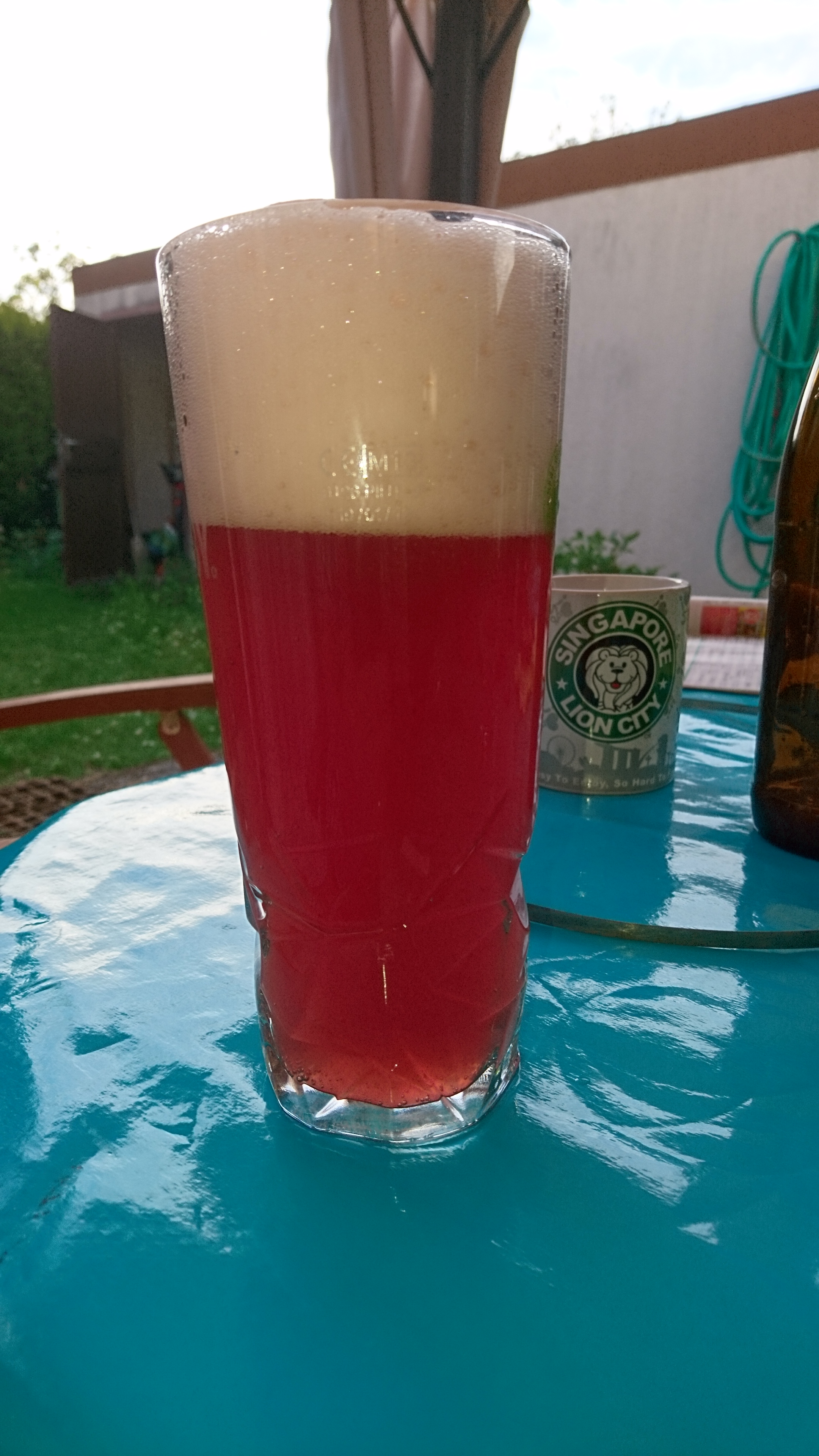 Die Gose ist noch etwas zu grün, so viel steht fest. Geruchlich eine Mischung aus fruchtigem Beerencocktail und Kellerpils. Die Hopfung ist mir eher pilstypisch geraten. Es hat was untergäriges obwohl es das nicht ist.