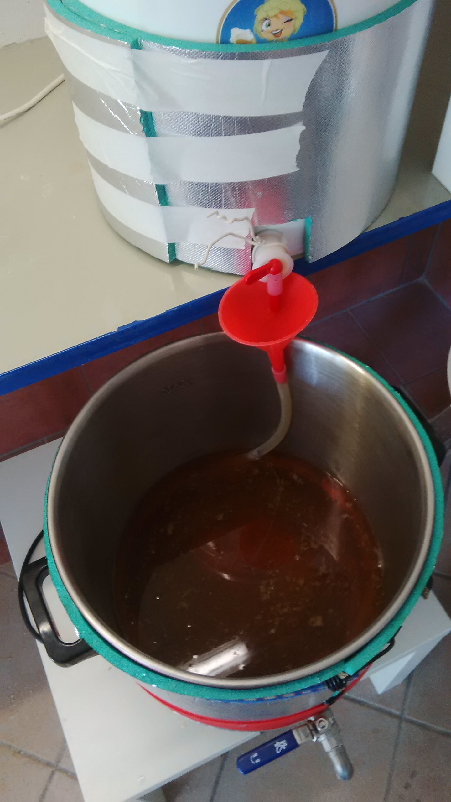 Diesmal wars aber nur 1 Sud mit 20 Litern, da ich den neuen Einkocher testen wollte, ob er auch wallend kocht.
