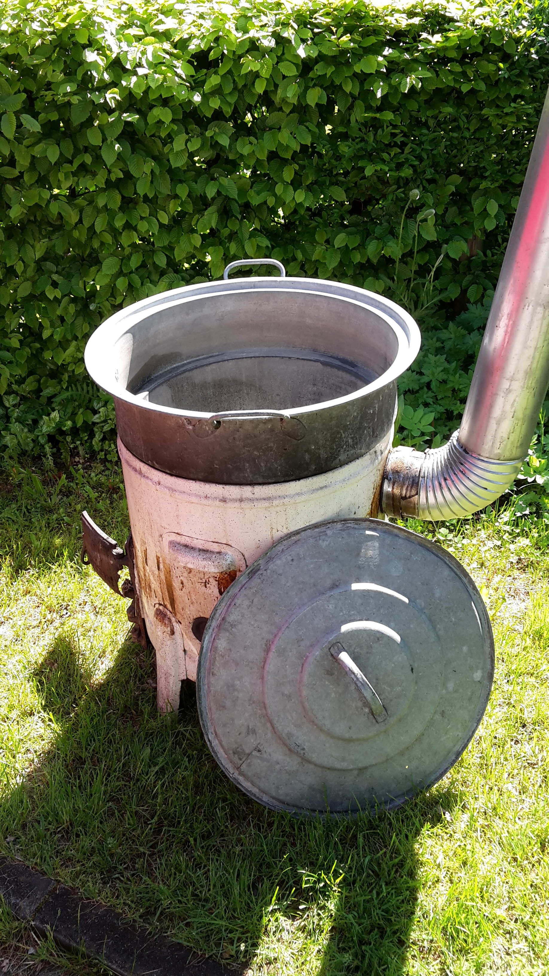 Mir stehen zwei ca. 110l Kupfer Kessel zur Verfügung. Manchmal muss man einfach Glück haben! :P