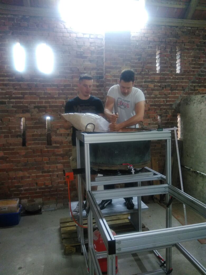 Mir stehen zwei ca. 110l Kupfer Kessel zur Verfügung. Manchmal muss man einfach Glück haben!