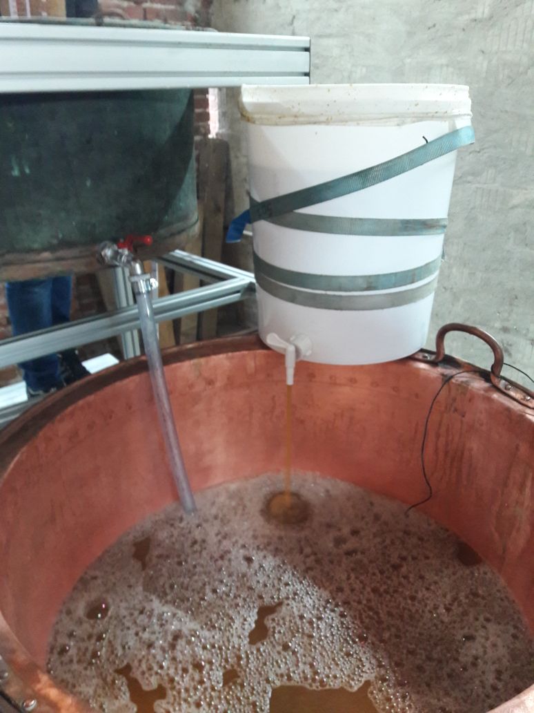 Mir stehen zwei ca. 110l Kupfer Kessel zur Verfügung. Manchmal muss man einfach Glück haben!