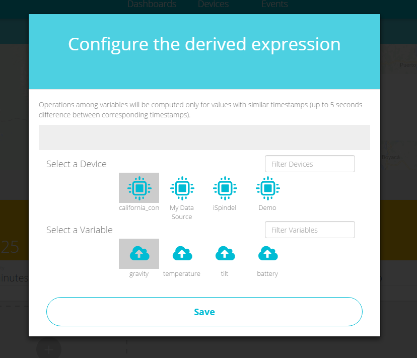 kann mir vielleicht jemand helfen, sodass ich die Derived Variable einstellen kann? Wenn ich auf mein Device klicke und auf 'Add Variable' gehe, dann mein Device nochmal auswähle, kann ich nirgends die von mir errechnete Formel eingeben, sondern komme immer nur auf das sich im Anhang befindliche Fenster.