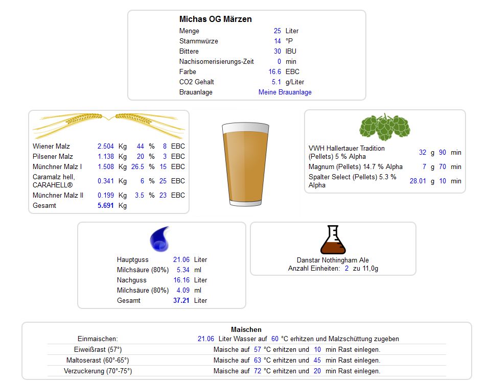 ich würde gerne das Rezept von MMuM "Michas OG Märzen" brauen, und habe es etwas angepasst an meine vorhandenen Malze / Hopfen und das ganze in den KBH eingetragen und mich dort "beraten" lassen. Meint ihr das wird so auch schmecken?