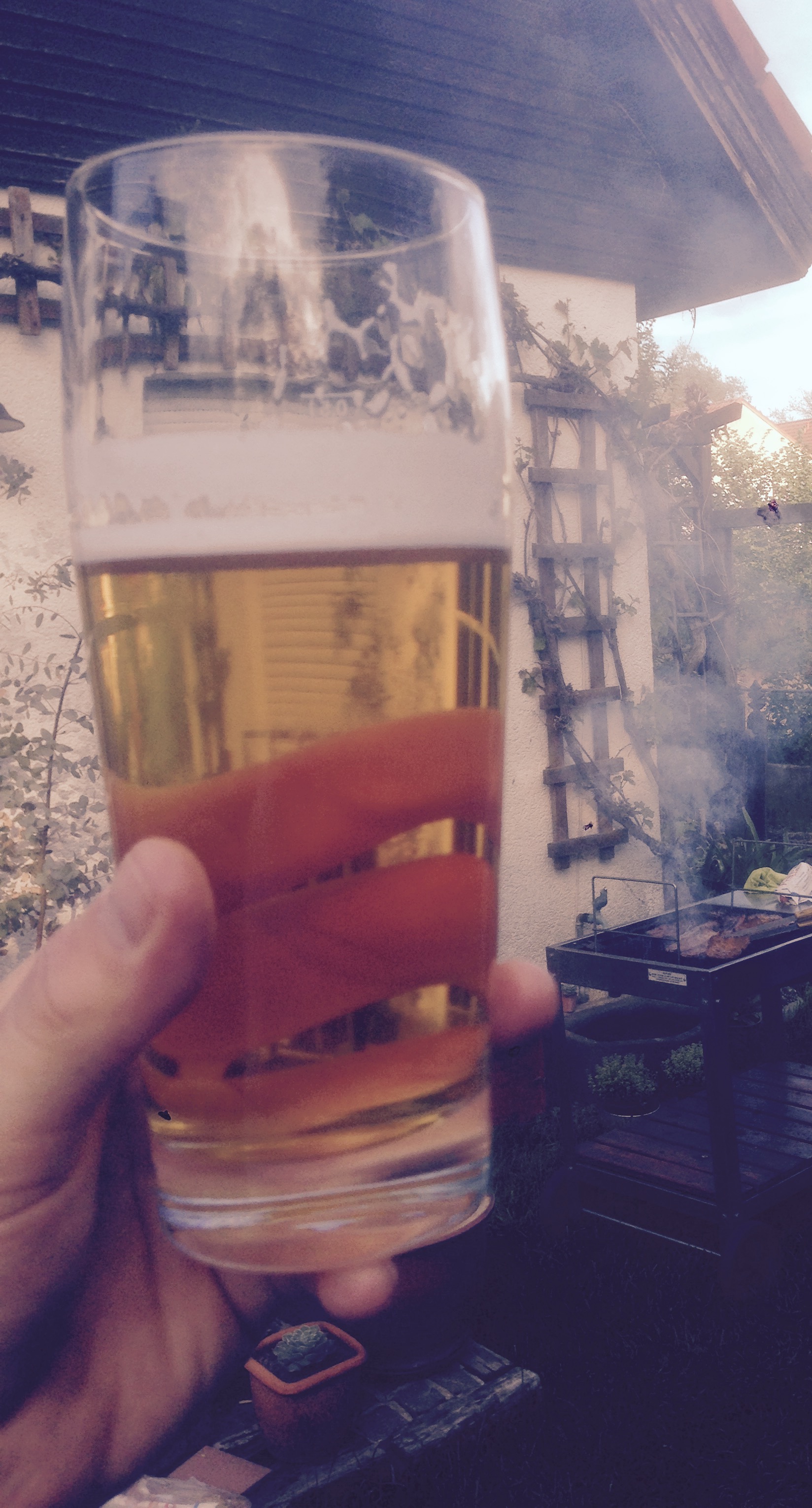 Bin gerade von einer anstrengenden Wanderung aus dem Spessart heimgekommen. Schön kaltes Schönramer Pils aus dem Kühlschrank und raus auf die Terrasse. Zisch, aaaaahhh und ex. Gleich schon das zweite. Lecker.