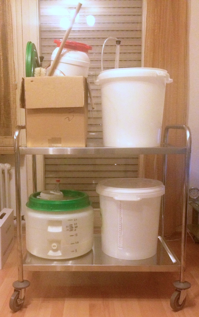 da mein bisheriger Brauutensilien-Lagerplatz zugunsten eines Kinderbetts und eines Wickeltischs vom Schlafzimmer in den Keller verlegt wurde, habe ich mir Gedanken über einen Servierwagen oder etwas in der Art gemacht um den Einkocher, die Eimer, und was man sonst noch hat vom Keller in die Küche zu transportieren.