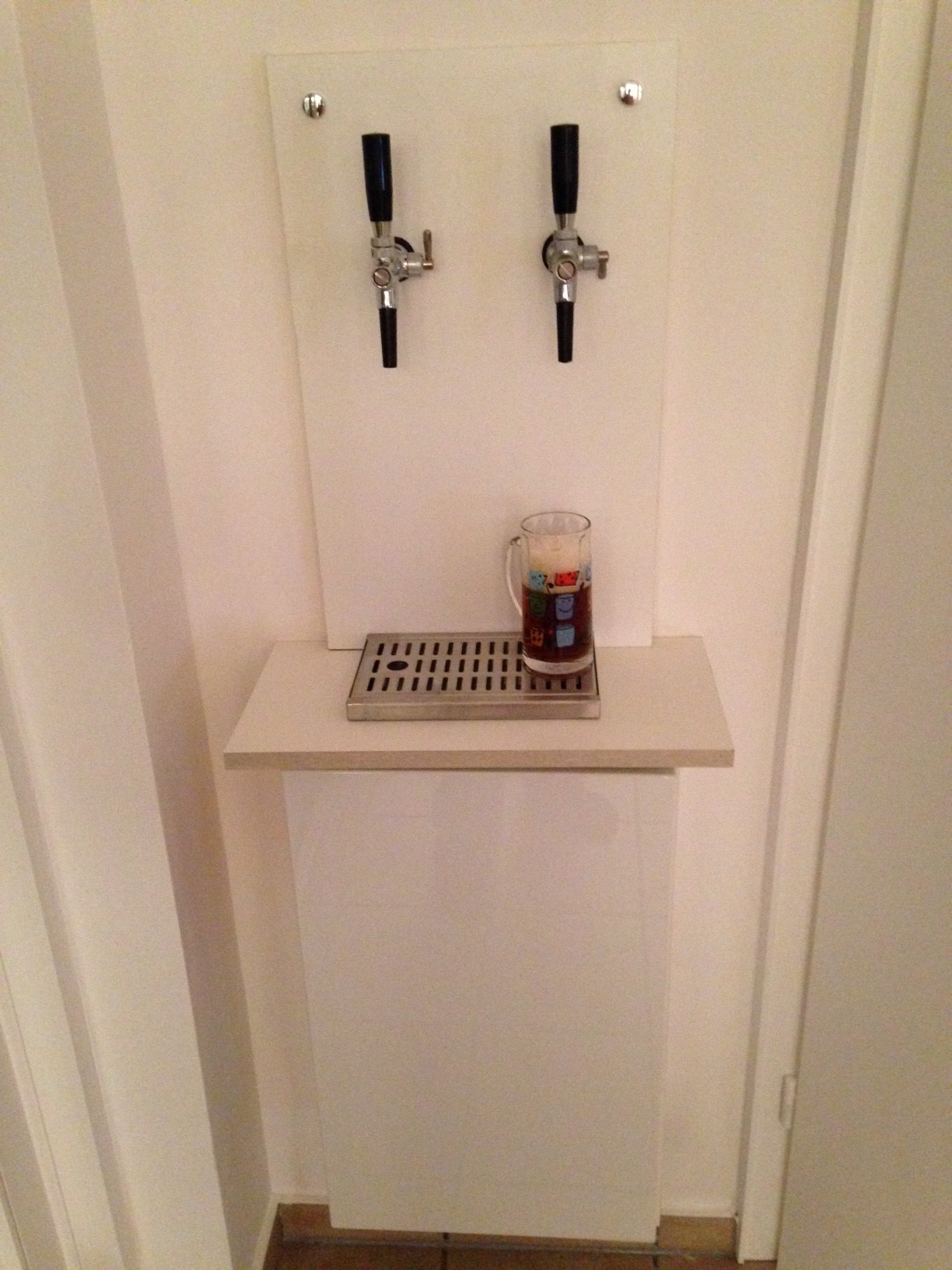 Jetzt zäume ich das Pferd von hinten auf. Ich habe eine Zapfanlage (Untertheken-Naßkühler) geschenkt bekommen und es galt diese im Wohnzimmer zu integrieren und zwar so, dass der Kühler nebst Fass im Keller steht.