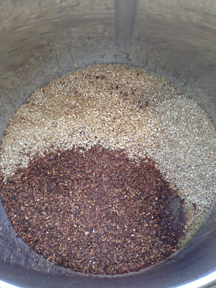 Schöne Farben hier im Topf. Wenn ich mir das Bild so ansehe, werd ich aber das Gefühl nicht los, dass da zuviele ganze Körner sind. Habe ich so "in echt" nicht wirklich bemerkt. Hatte eher Angst, zu fein gemahlen zu haben. Jetzt nur noch einrühren und warten. Ziemlich entspannt bisher. Zeit für ein selbstgebrautes Bier