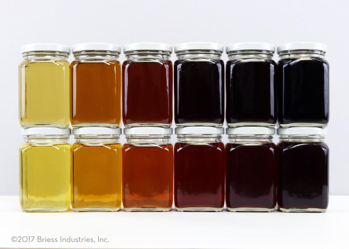 Die Gläser die übereinander stehen haben den selben gemessenen Farbwert. Oben Röstmalz und Karamalz.