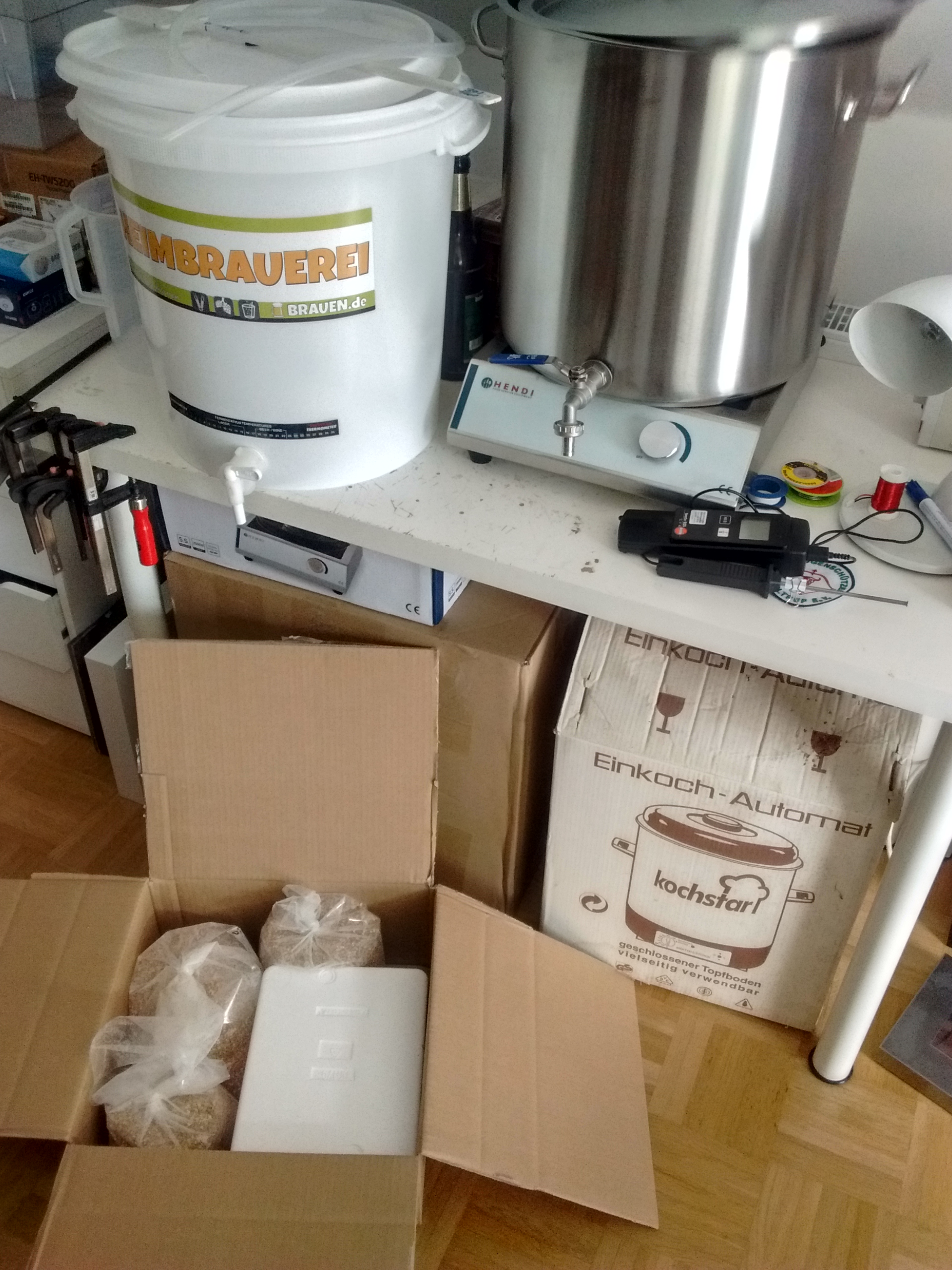 Nachdem ich den Gärprozess nun mit seinen Höhen und Tiefen kennengelernt habe und das Buch "Gutes Bier selbst brauen" von Hubert Hanghofer studiert habe, geht es am kommenden Freitag endlich mit meinem ersten Sud los. Heute sind die letzten Zutaten eingetroffen und das Equipment ist auch komplett getestet. Ich kann es kaum erwarten
