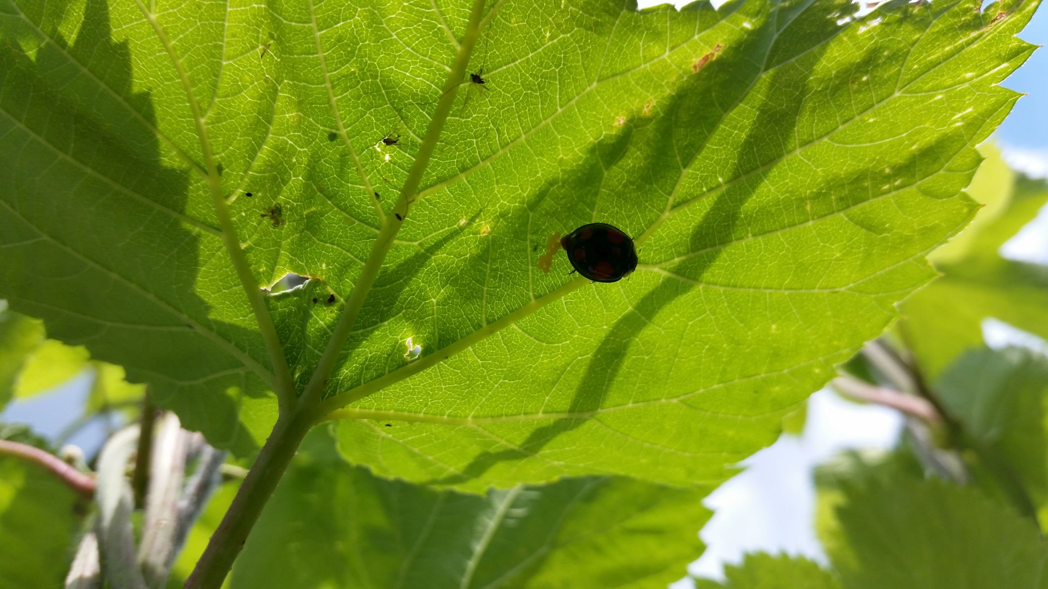 Die sind das beste natürliche Mittel gegen Blattläuse. Als ich Anfang des Monats aus den USA wieder kam war ich entsetzt über den Befall von Blattläusen. Die komplette Hopfenpflanze war betroffen.