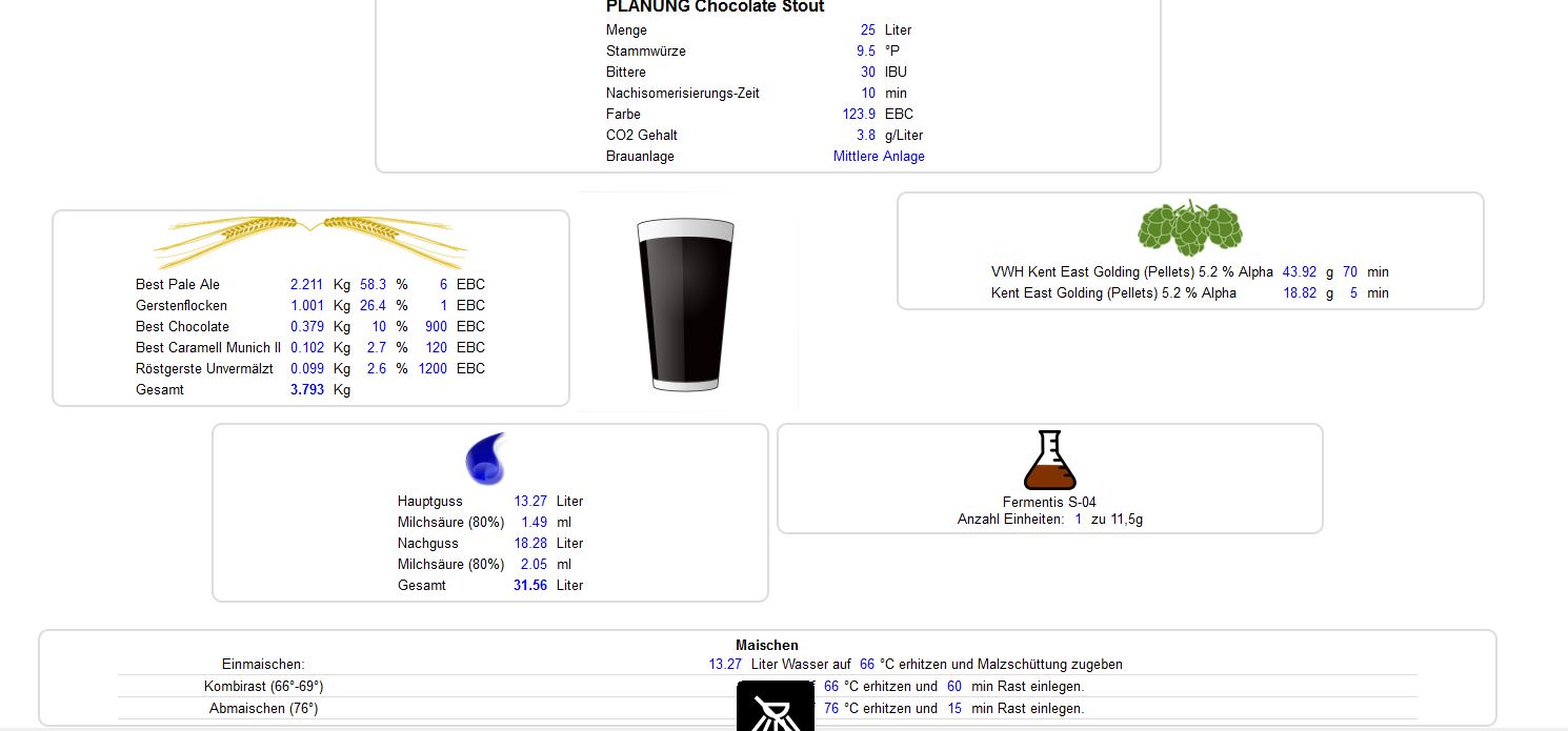 Naja Laktose könnte ich mir schon vorstellen. War auch in diversen Rezepten von Chocolate Stouts drin. Zur Not vergär ich im Kühlschrank bei 15 Grad. Dann kann ich aber nur 20L machen, weil ich nur ein 30 er Bottich reinstellen kann. Denke der läuft mir bei 25L sonst über.