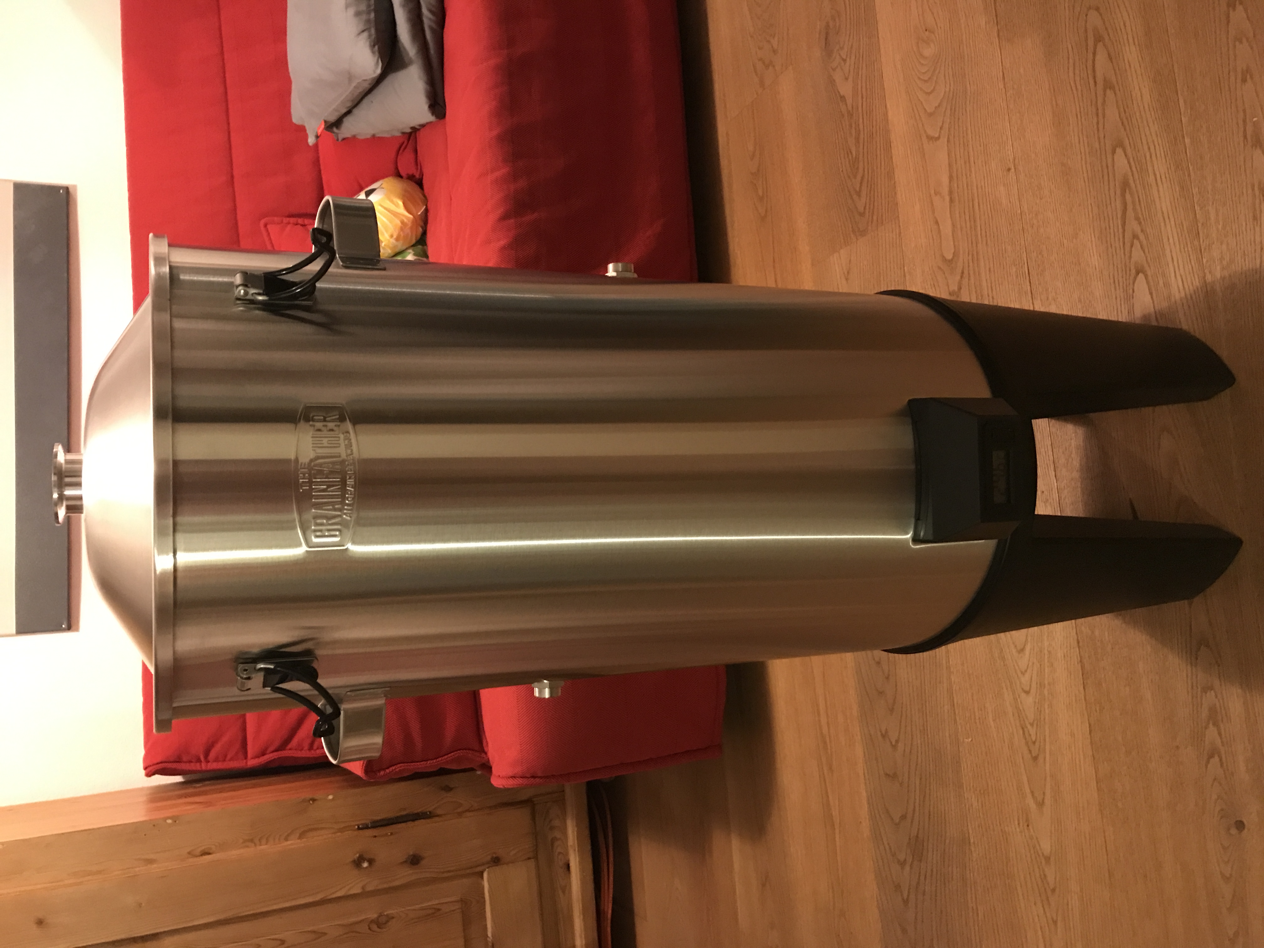 Also, nach dem Trockenlauf gestern, habe ich den Conical heute live fürs Brauen verwendet. Ich habe den Conical nochmal ordentlich gereinigt, dabei alle Schweissnähte angesehen. Alles sauber verarbeitet, soweit ich das als Laie sehen kann. Nirgends scharfe Kanten, lediglich am Deckel hätte ich mir noch eine Falz mehr gewünscht. Anschliessend Würze bei 30 Grad eingefüllt, innerhalb von 2 h war ich runter auf Anstelltemperartur von 17 Grad (mit Pygmy). Und jetzt laaangweilt sich der Pygmy, denn die 17 Grad werden sehr gut gehalten.
