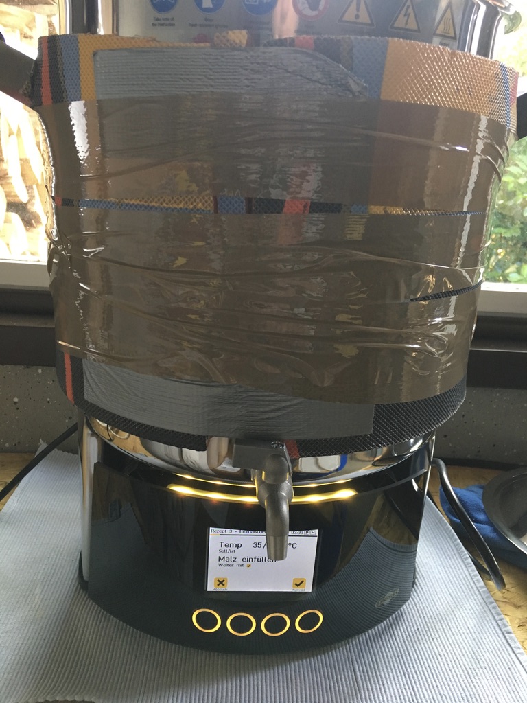 So bin ich heute um 06:30 aufgestanden, um endlich den neuen BM 10 einzuweihen. Gereinigt hatte ich ihn bereits am Vorabend, das Malz war ebenfalls schon abgewogen.