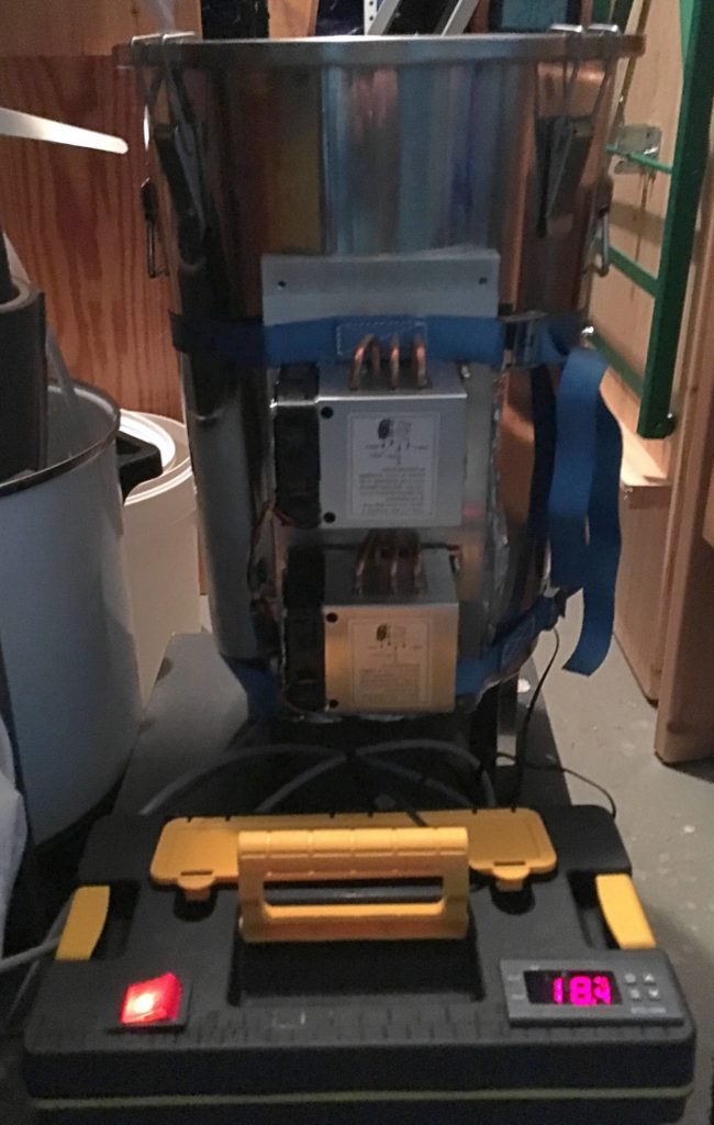 Für die elektrische Seite habe ich den entsprechenden STC-1000 bei AliExpress bestellt und auf alternative Firmware umgeflasht, um automatisch Temperatur-Rampen steuern zu können. Diesen habe ich dann zusammen mit dem Netzteil (12V 20A) mit Schalter, Steckern, etc. in einen Werkzeugkoffer eingebaut.